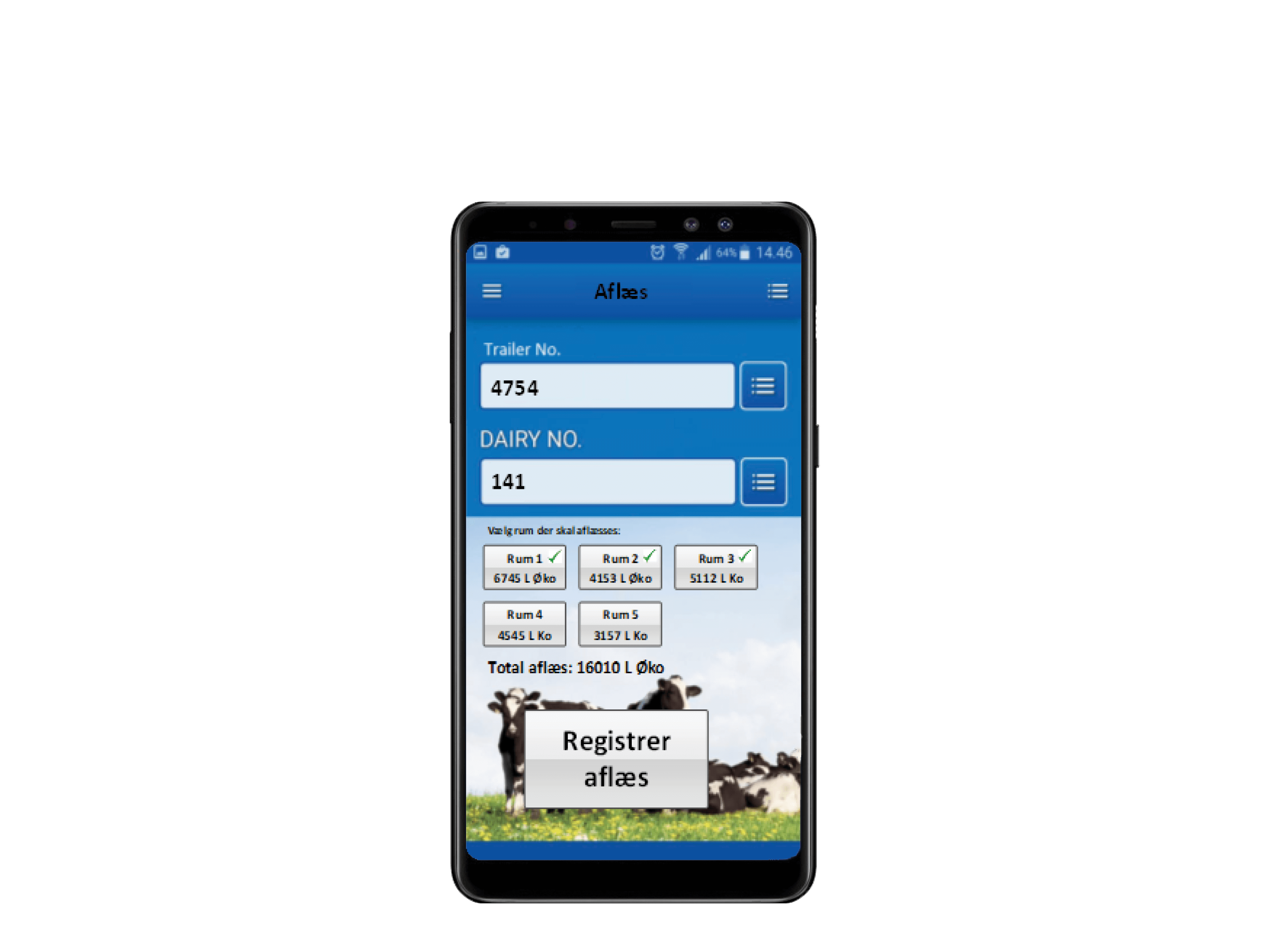 The Milk APP makes it possible to see the amount and the type of milk that has been pumped into the milk truck and where it comes from. It also indicates the quality and temperature of the milk. The dairy can keep track of the milk truck and monitor the collection route. The CIP status of the milk truck is also shown in the APP