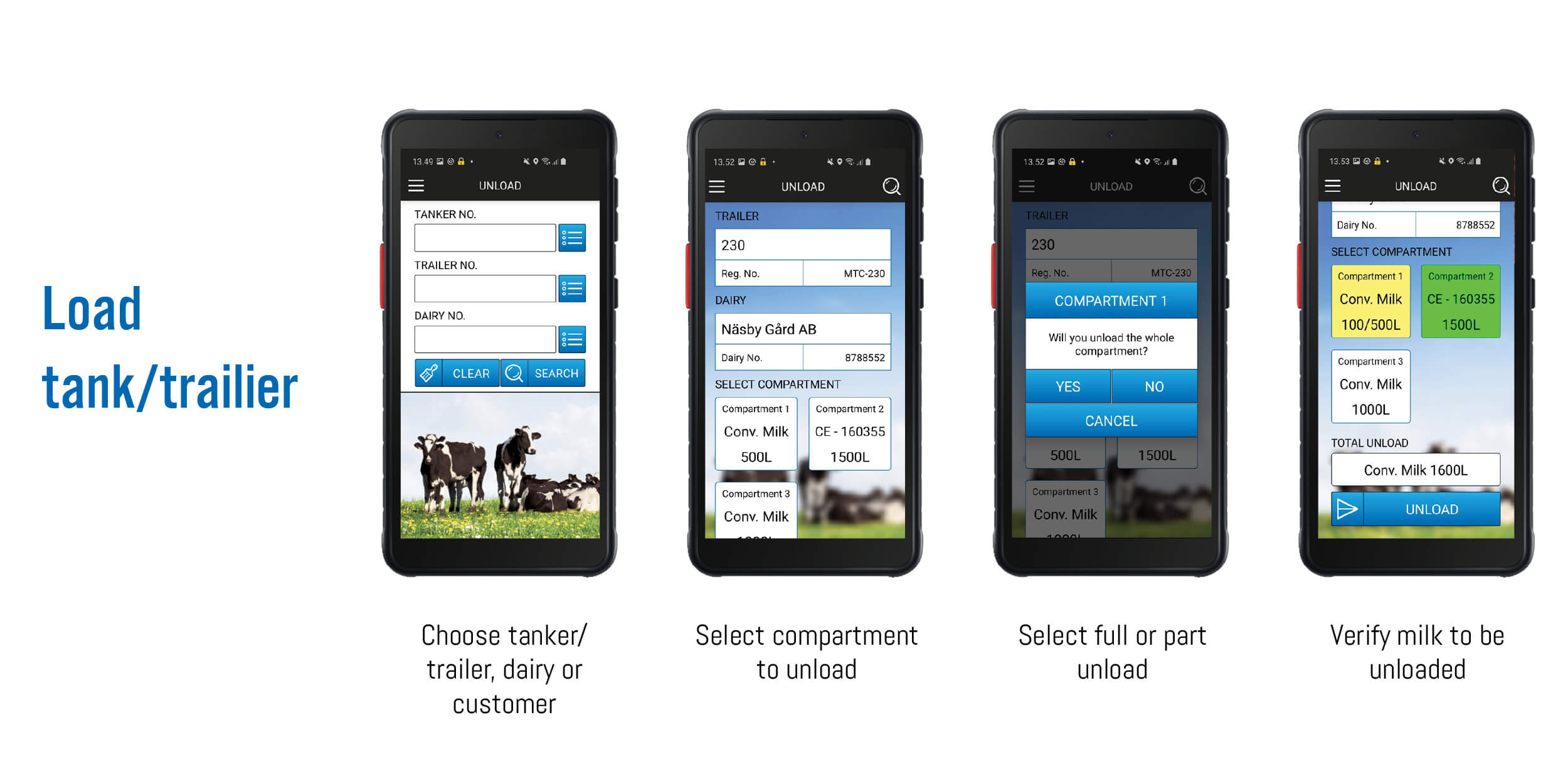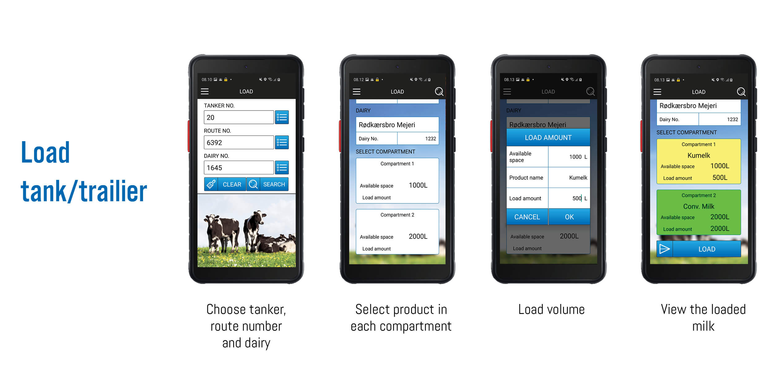 The Milk APP makes it possible to see the amount and the type of milk that has been pumped into the milk truck and where it comes from. It also indicates the quality and temperature of the milk. The dairy can keep track of the milk truck and monitor the collection route. The CIP status of the milk truck is also shown in the APP