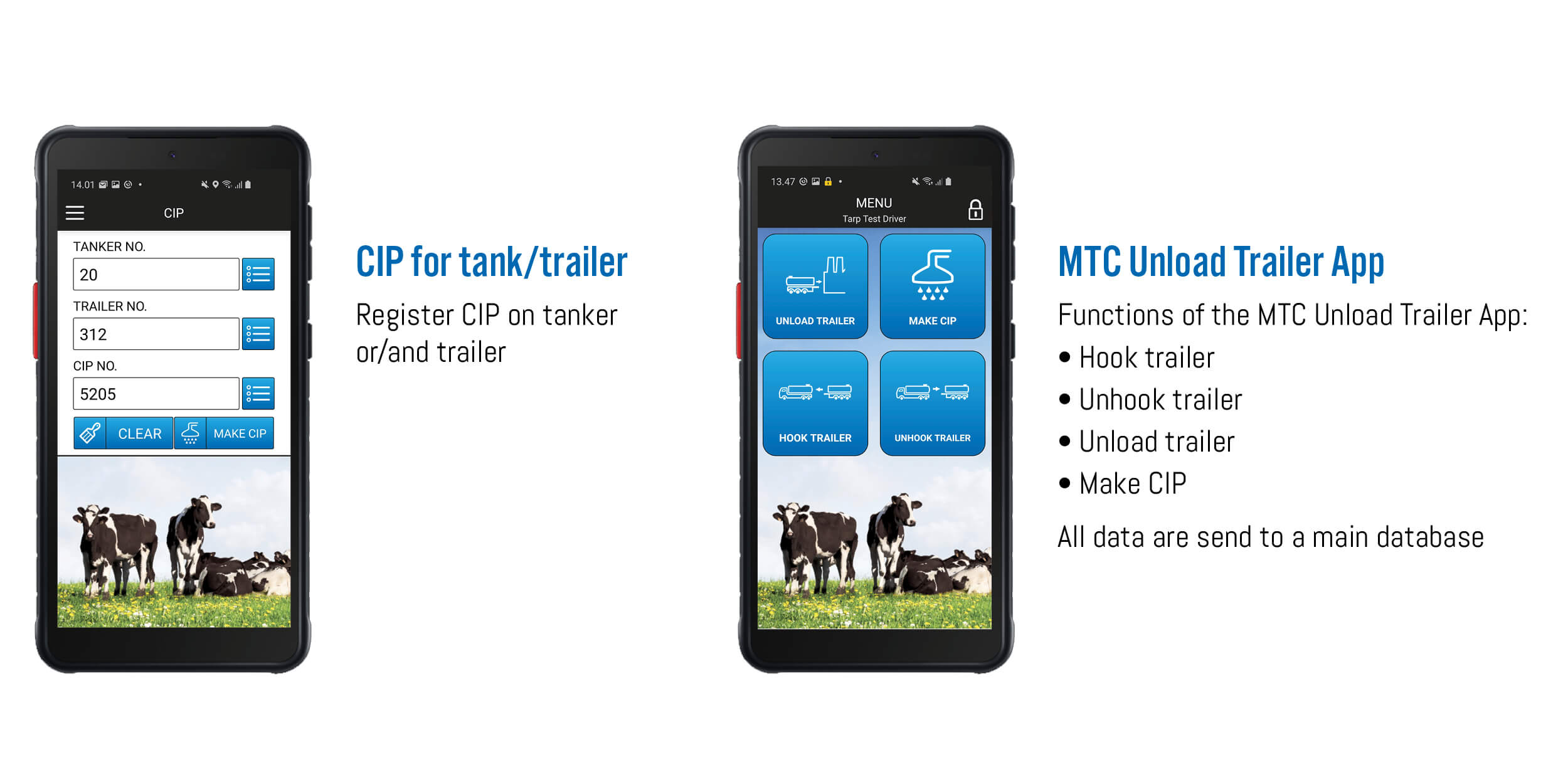 Data collected from the TOC Computer and the S12 computer is automatically sent to the MTC system, which is administered by the dairy. The route for milk collection, which is available on the TOC Computer is in fact planned by the dairy using the MTC system. The MTC system will also handle the settlement to the farmers and data on the milk quality results. The Milk APP makes it possible for, the driver, the farmer and the dairy to track the milk tanker and the milk quantity from the moment the milk is collected and until it is delivered.