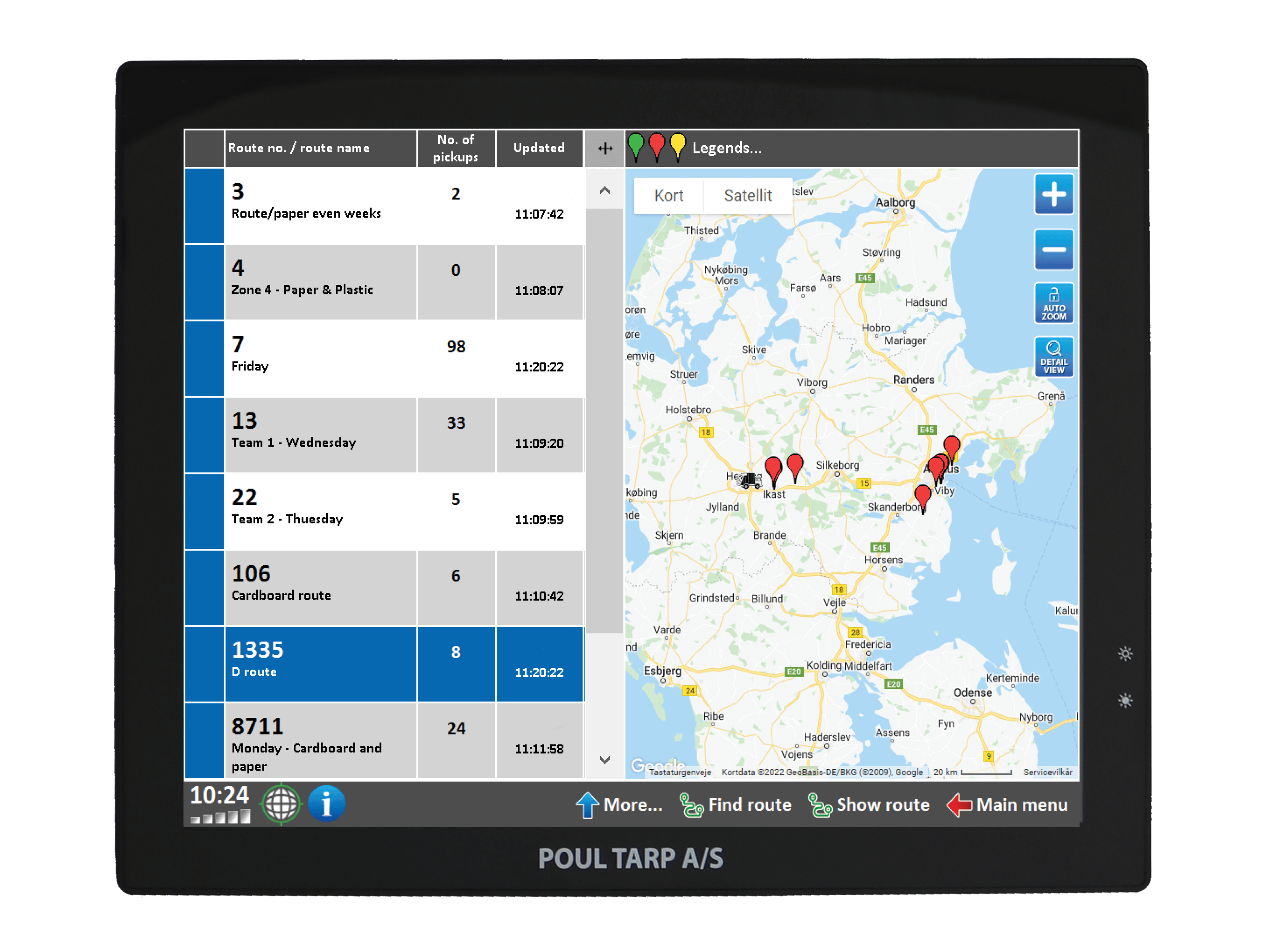 Complete solutions from POUL TARP A/S for registration and exchange of route data and weigh data between the office, the truck and driver.